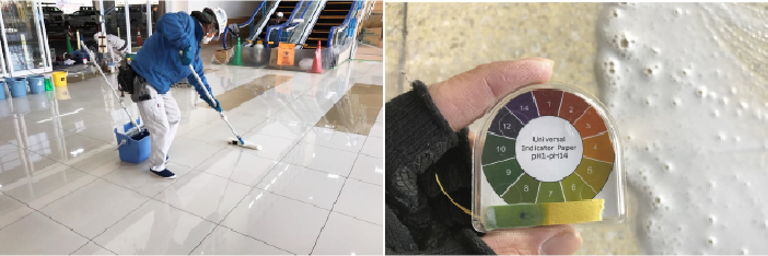 予定された日にて防滑施工を行います。300㎡〜500㎡なら3〜4時間程度で終了します。施工完了後、静摩擦測定と官能テストにて、防滑効果や美観のご確認をいただけます。